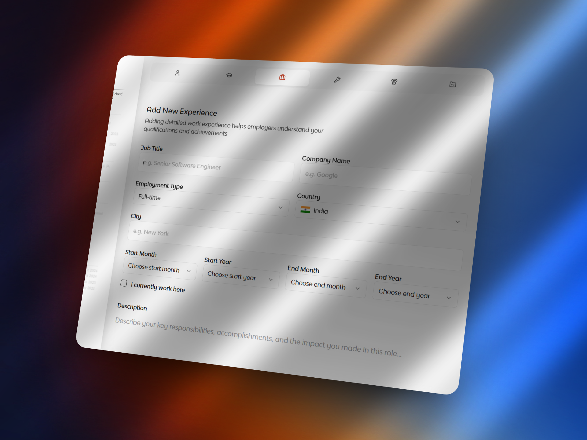 Enable “Currently Working” if it’s your active role. Letraz will automatically display “Present.”